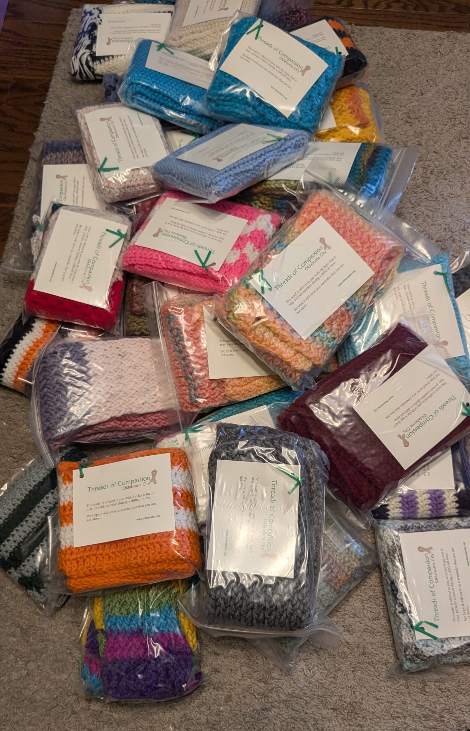 There were 14 scarves to package – including some mailed to us from Virginia!