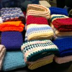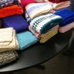 Scarves ready to package Packaging the scarves is a great part of the work days! The beginning of a new scarf. Great progress being made on this scarf! A new scarf off to a great beginning One of the ones we packaged, great work! A great pile of scarves ready to package. The finished products. Packaged and ready to deliver! - We have one of these each month, and we’d love to see you at our next one!
