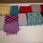 We are thankful to have received 36 scarves (11 knitted and 25 crocheted) donated by volunteers both old and new to Threads.