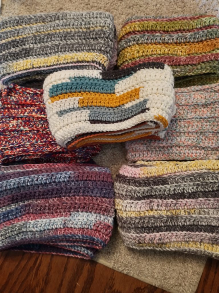 Posted on May 2, 2022 by JessicaColorful! These beautiful scarves are from a new volunteer. I’m so glad she found us!!