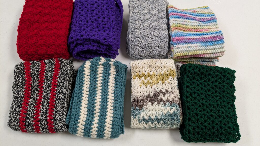 We shared patterns and tips and worked on scarves and packaged 8 beautiful scarves.